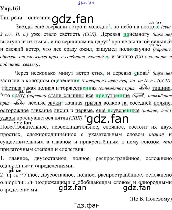 Проверка домашнего задания всегда занимает большое количество времени. На помощь приходит ГДЗ фан по Русскому языку девятого класса. Здесь собраны популярные ответы на 161 (стр. 84) Русский язык 9 класс Бархударов С.Г.