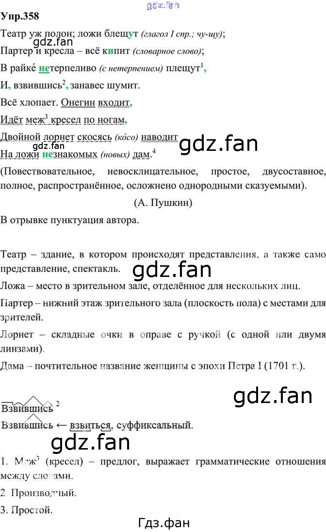 Проверка домашнего задания всегда занимает большое количество времени. На помощь приходит ГДЗ фан по Русскому языку девятого класса. Здесь собраны популярные ответы на 358 (стр. 178) Русский язык 9 класс Бархударов С.Г.