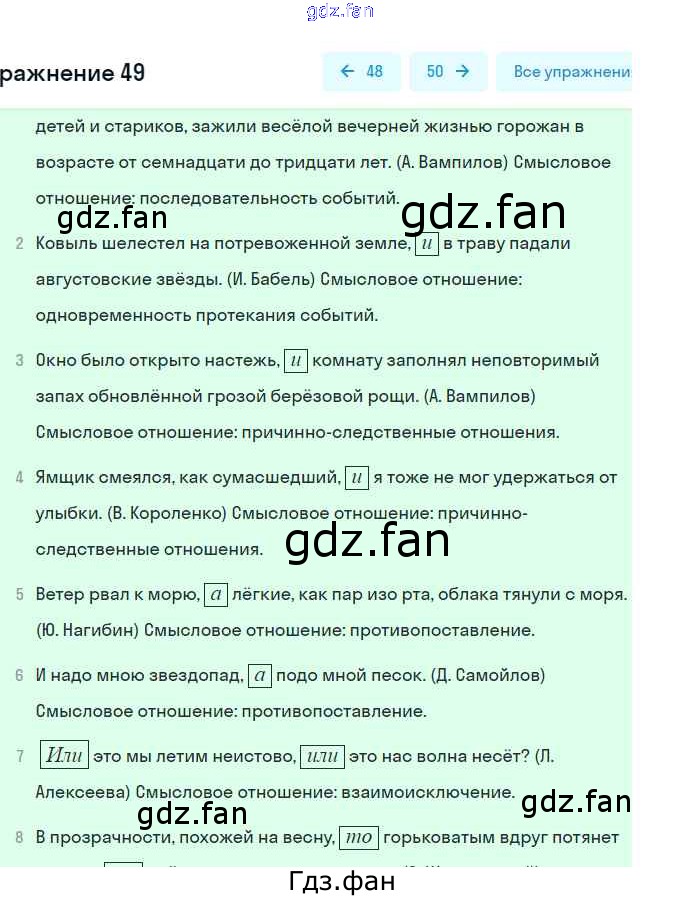 Проверка домашнего задания всегда занимает большое количество времени. На помощь приходит ГДЗ фан по Русскому языку девятого класса. Здесь собраны популярные ответы на 49 (стр. 50) Русский язык 9 класс рабочая тетрадь Литвинова М.М.