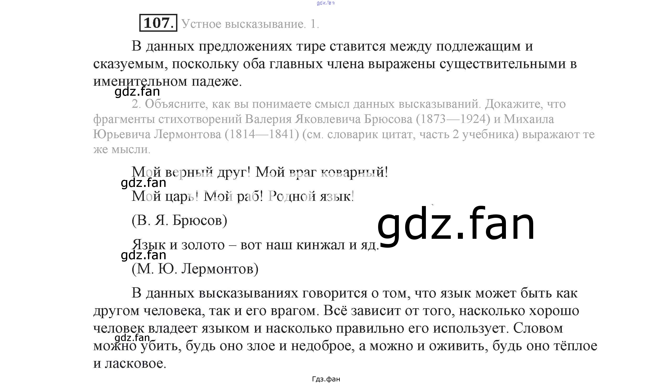 Проверка домашнего задания всегда занимает большое количество времени. На помощь приходит ГДЗ фан по Русскому языку девятого класса. Здесь собраны популярные ответы на 107 (стр. 49) Русский язык 9 класс Львова С.И.
