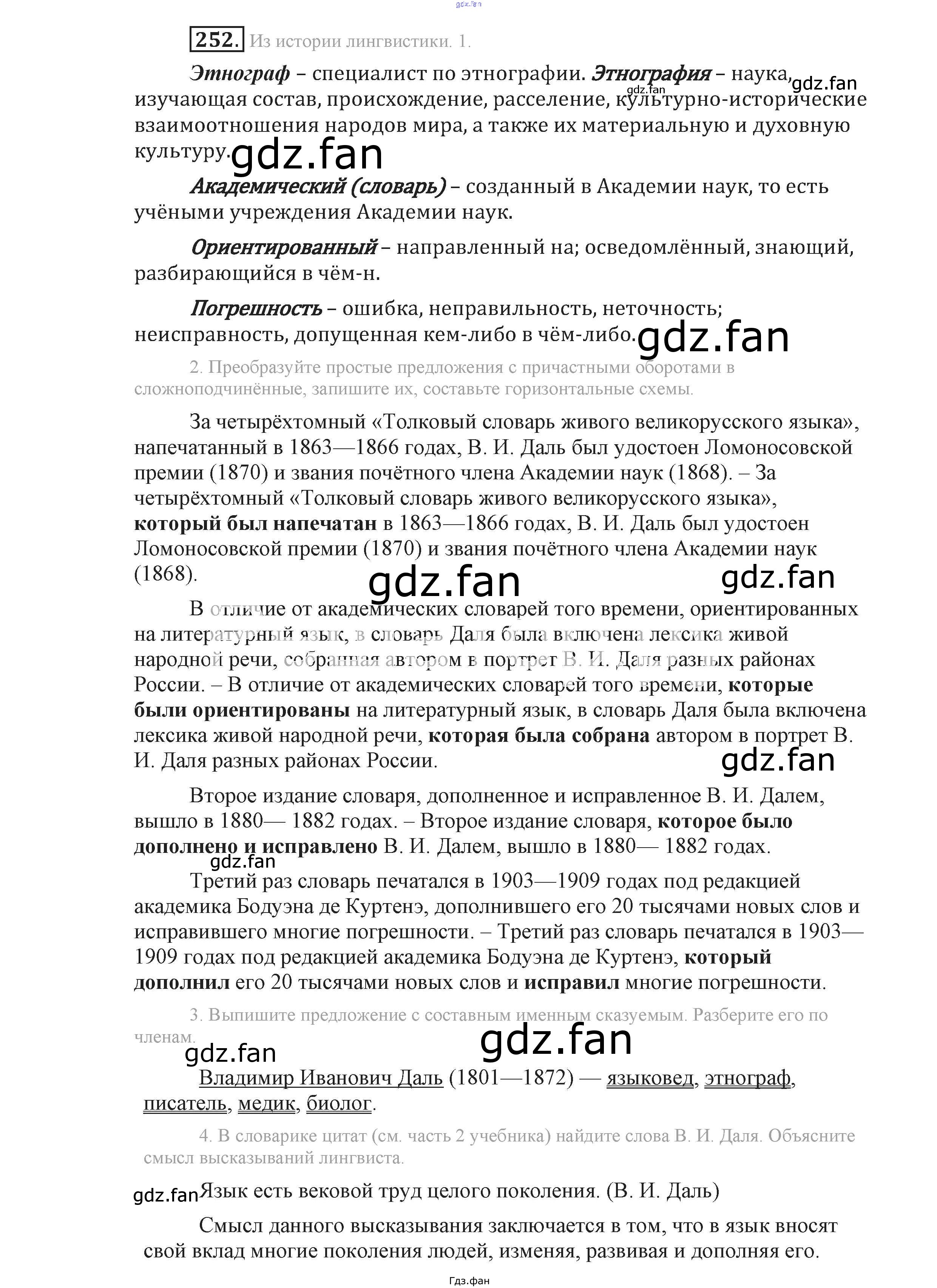 Проверка домашнего задания всегда занимает большое количество времени. На помощь приходит ГДЗ фан по Русскому языку девятого класса. Здесь собраны популярные ответы на 252 (стр. 136) Русский язык 9 класс Львова С.И.