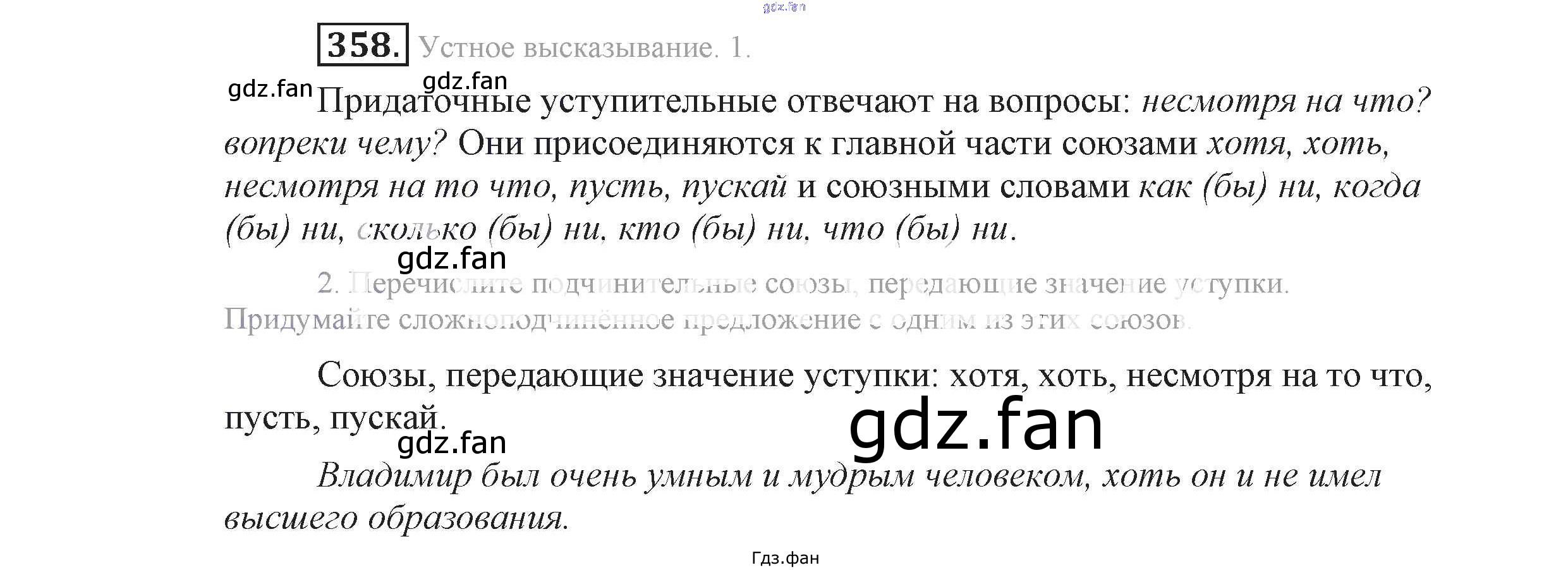 Проверка домашнего задания всегда занимает большое количество времени. На помощь приходит ГДЗ фан по Русскому языку девятого класса. Здесь собраны популярные ответы на 358 (стр. 191) Русский язык 9 класс Львова С.И.