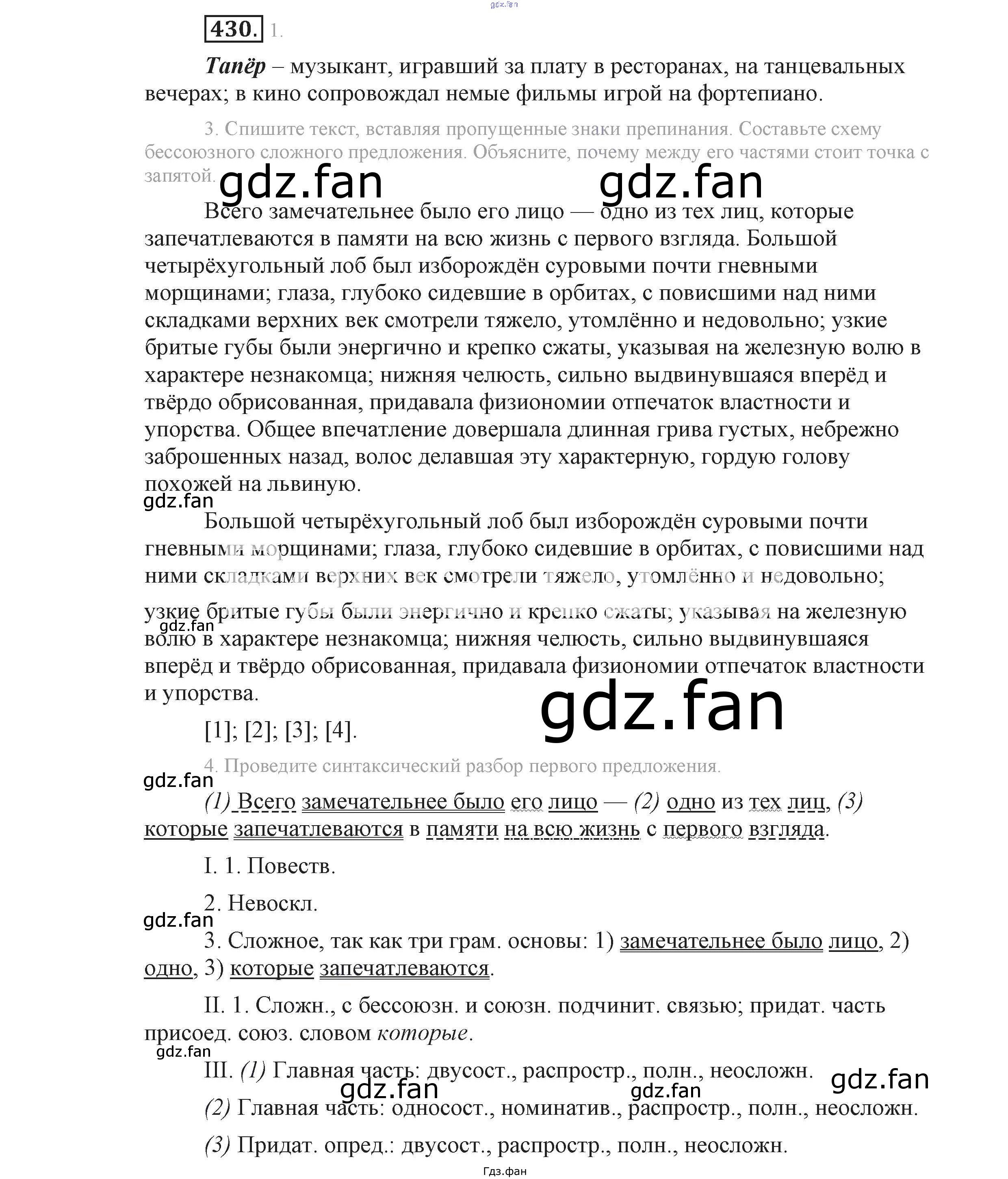 Проверка домашнего задания всегда занимает большое количество времени. На помощь приходит ГДЗ фан по Русскому языку девятого класса. Здесь собраны популярные ответы на 430 (стр. 234) Русский язык 9 класс Львова С.И.