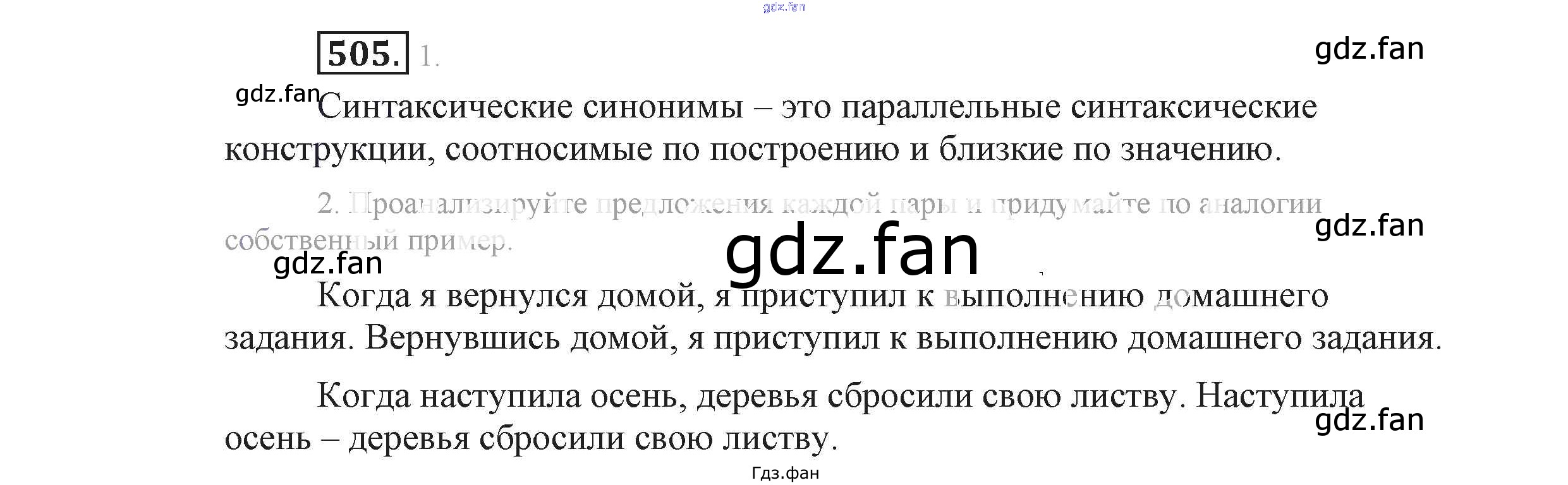 Проверка домашнего задания всегда занимает большое количество времени. На помощь приходит ГДЗ фан по Русскому языку девятого класса. Здесь собраны популярные ответы на 505 (стр. 270) Русский язык 9 класс Львова С.И.