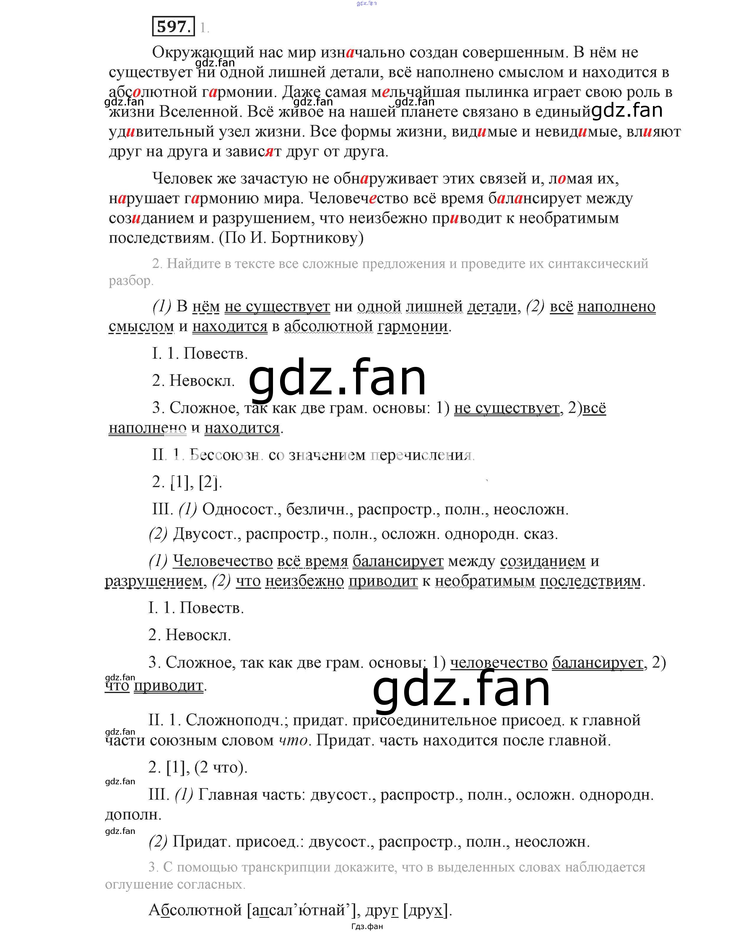Проверка домашнего задания всегда занимает большое количество времени. На помощь приходит ГДЗ фан по Русскому языку девятого класса. Здесь собраны популярные ответы на 597 (стр. 316) Русский язык 9 класс Львова С.И.