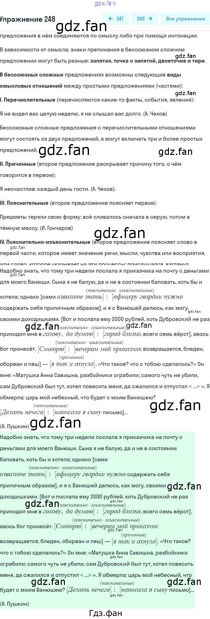 Проверка домашнего задания всегда занимает большое количество времени. На помощь приходит ГДЗ фан по Русскому языку девятого класса. Здесь собраны популярные ответы на 248 (стр. 168) Русский язык 9 класс практика Пичугов Ю.С.