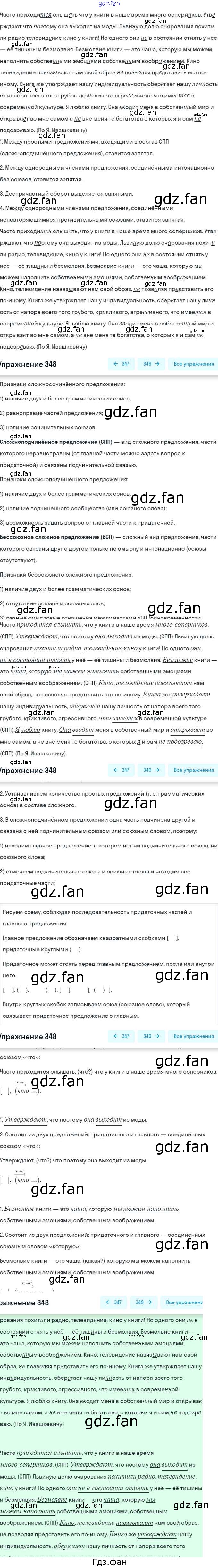 Проверка домашнего задания всегда занимает большое количество времени. На помощь приходит ГДЗ фан по Русскому языку девятого класса. Здесь собраны популярные ответы на 348 (стр. 204) Русский язык 9 класс Разумовская М.М.