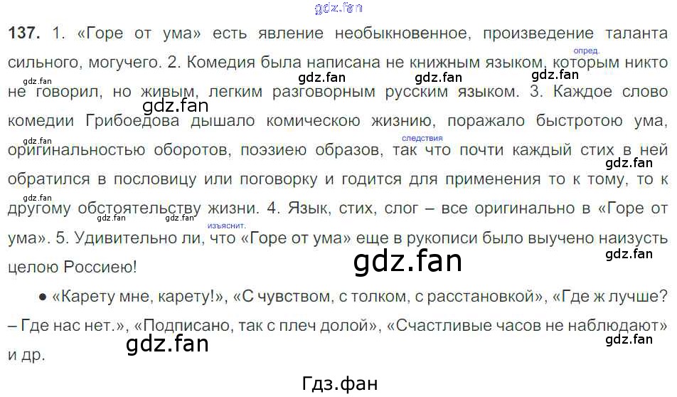 Проверка домашнего задания всегда занимает большое количество времени. На помощь приходит ГДЗ фан по Русскому языку девятого класса. Здесь собраны популярные ответы на 137 (стр. 90) Русский язык 9 класс Тростенцова Л.А.