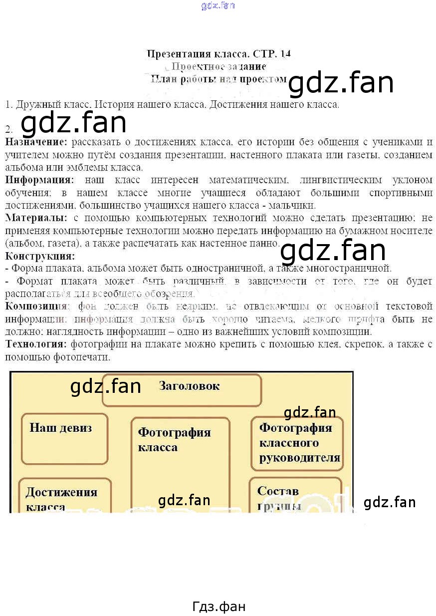 Проверка домашнего задания всегда занимает большое количество времени. На помощь приходит ГДЗ фан по Технологии четвертого класса. Здесь собраны популярные ответы на 14 (презентация класса) Технология 4 класс рабочая тетрадь Лутцева Е. А.
