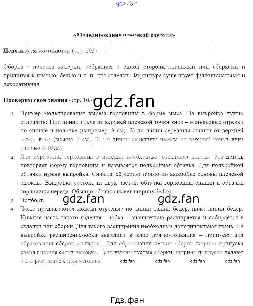 Проверка домашнего задания всегда занимает большое количество времени. На помощь приходит ГДЗ фан по Технологии шестого класса. Здесь собраны популярные ответы на 103 (моделирование плечевой одежды) Технология 6 класс Синица Н.В.