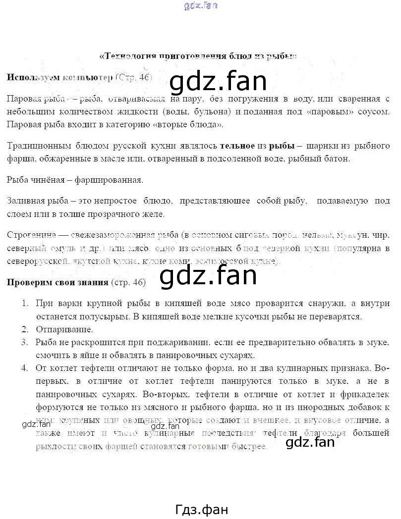 Проверка домашнего задания всегда занимает большое количество времени. На помощь приходит ГДЗ фан по Технологии шестого класса. Здесь собраны популярные ответы на 46 (технология приготовления блюд из рыбы) Технология 6 класс Синица Н.В.