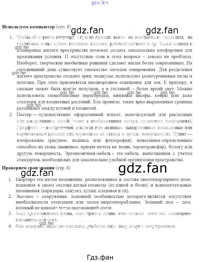 Проверка домашнего задания всегда занимает большое количество времени. На помощь приходит ГДЗ фан по Технологии шестого класса. Здесь собраны популярные ответы на 8 (используем компьютер) Технология 6 класс Синица Н.В.